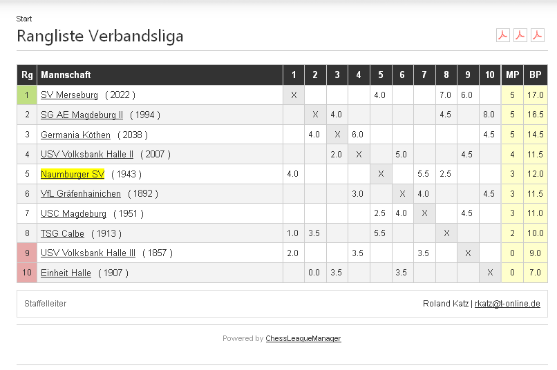 Heute möchten wir auf die neue Version 1.1.3 unserer Externen Komponente in Verbindung mit dem Externen Modul aufmerksam machen. Über einen Schlüsselwortparameter lassen sich die Mannschaften eines Vereins hervorheben. Das sollte besonders für Vereinsseiten interessant sein, die auf Ligen von Landes- oder Bezirksseiten zugreifen. Unter 6 verschiedene Markierungsfarben kann passend zum Layout der eigenen Seite gewählt werden. Hier ein Beispiel mit Schlüsselwort Naumburg und Markierungsfarbe Gelb.