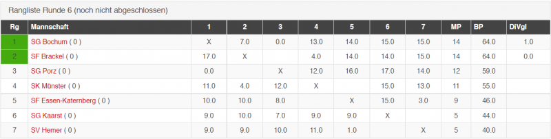 Mir ist ein Fehler bei der Berechnung des direkten Vergleichs aufgefallen (Siehe Screenshot). Bei dem Turnier wird mit der 3-2-1-0-Wertung, also einem Antrittspunkt, für Brett- und Mannschaftspunkte gespielt.