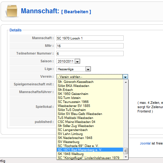 Hier konnte ich mir noch mit manuellen Einträgen in der Datenbank helfen, auch bei der Mannschaftsmeldung war das noch möglich, aber ich befürchte, diese manuellen Eingaben werden beim Einpflegen der Einzelergebnis viel zu umfangreich werden.