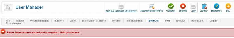 Bim erstellen eines neuen Benutzers (der bei Joomla schon existierte) kam: