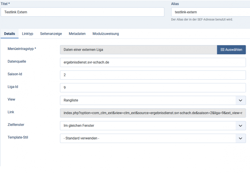 Im CLM gibt es den Menüeintragstyp "Daten einer externen Liga".
