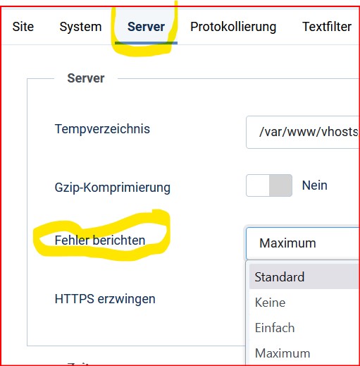 ist da unter "Fehler berichten" auf "Maximum" eingestellt.