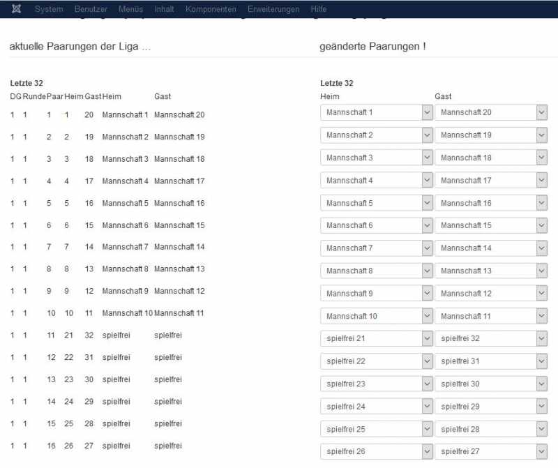 WEnn die vorgeschlagenen Paarungen der 1. Runde nicht gefallen, kann man diese über 'Paarungen bearbeiten' im Rundenmanager ändern. Bitte versuchen.